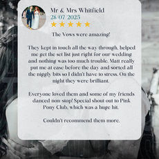 Whether you prefer traditional music, classical songs, or modern pop songs, we can work with you to set the perfect tone for your day, as you walk down the aisle to any song of your choice. The Vows will be the perfect soundtrack to the most special of occasions.